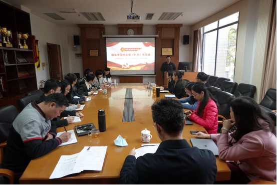 12月20日上午,9728太阳集团在南校区院系楼245会议室举办学习贯彻中国共产党第十九届中央委员会第六次全体会议精神理论学习中心组(扩大)学习会。会议由学院党委书记林绍雄主持,学院党委委员、党政领导班子成员、党支部书记、组织员、系部主任等参加会议。