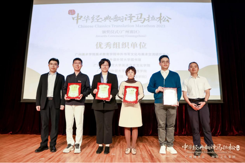 10月22日下午,“2023中华经典翻译马拉松”(广州赛区)颁奖仪式在广州图书馆举行。该赛事由中华传统文化多语研学基地发起,广州图书馆主办,广州美术学院、广东外语外贸大学图书馆、广外英语语言文化学院、广外9728太阳集团协办。广外9728太阳集团荣获本赛事广州赛区“优秀组织单位”奖,学院研究生辅导员、研究生党支部书记吴世傲老师代表学院在仪式现场接受颁奖。